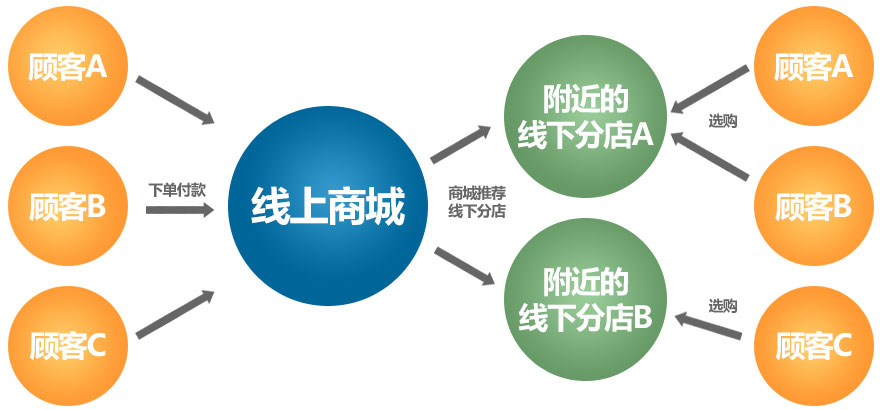 文彩婦幼用品有限公司主營(yíng)婦幼用品,線下有多家連鎖店,傳統(tǒng)母嬰用品企業(yè)導(dǎo)入O2O是未來的趨勢(shì),文采借助O2O解決方案,搭建了五網(wǎng)合一商城(PC商城、微信商城、易信商城、手機(jī)商城、APP商城),實(shí)現(xiàn)了“店商+電商”的新型O2O購(gòu)物模式。其中,“線上消費(fèi)、線下提貨”是文彩O2O解決方案中的重頭戲。拿微信商城來說,顧客在文彩微信商城上購(gòu)物,到了支付時(shí),顧客可選擇在線支付或線下提貨,若是選擇了線下提貨,系統(tǒng)會(huì)自動(dòng)獲取消費(fèi)者的地理位置,在 “所轄地區(qū)”選擇默認(rèn)分店待訪客確認(rèn)或自行選擇其他子站。